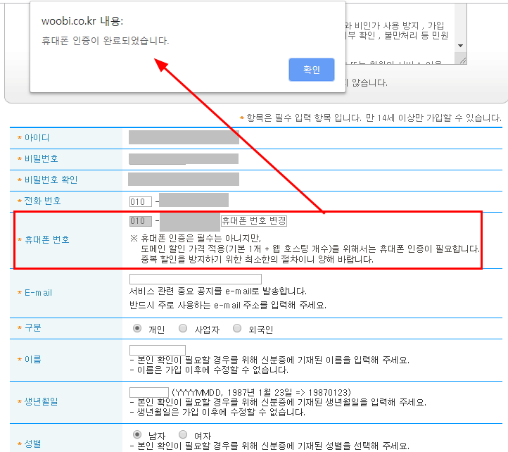 휴대폰 번호 인증을 안 해도 되지만, 도메인 할인 가격 적용(기본 1개)를 위해서는 인증이 필요하다고 한다.