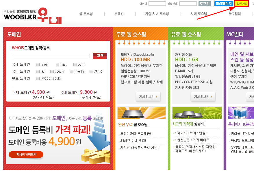woobi.kr 또는 woobi.co.kr 로 접속 가능하다.
