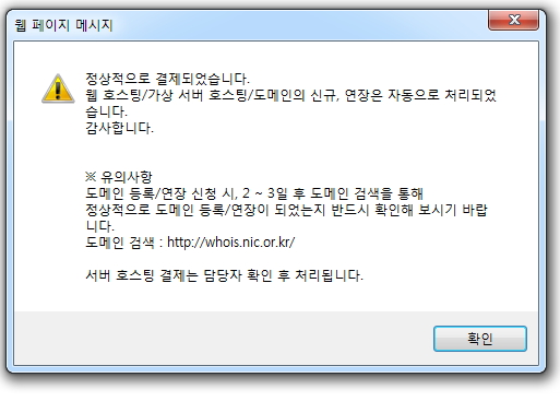 웹호스팅 신청은 아니기에 [도메인 기관 이전] 확인을 하시고...