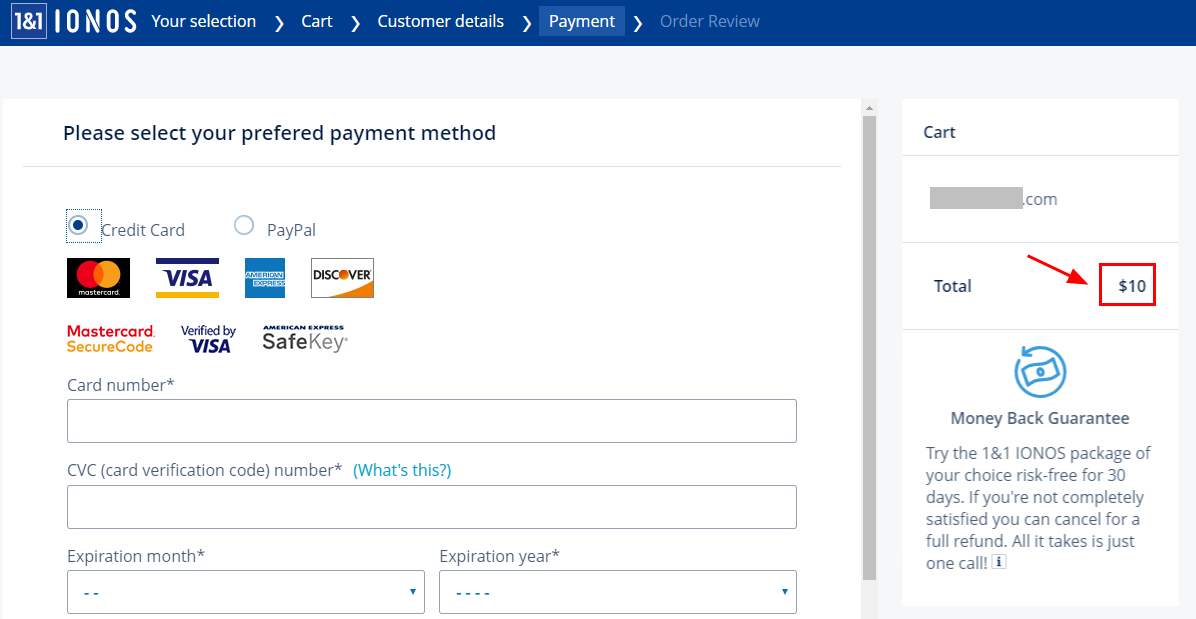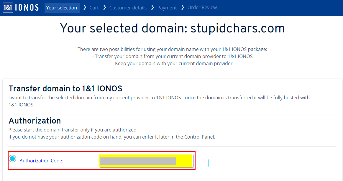 결론은 1&1 IONOS에서 .COM 도메인 이전을 하지 못했다. 가격이 갑자기 $10으로 결제시 변경되었기 때문이다.
