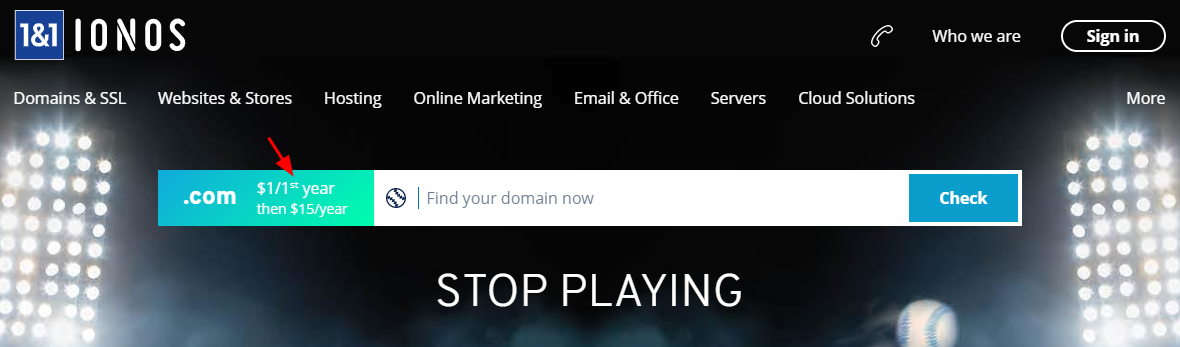 이벤트성이기도 하겠지만 .com 등록/이전을 $1에 가능하다고 하는 1&1 IONOS (ionos.com)이다.