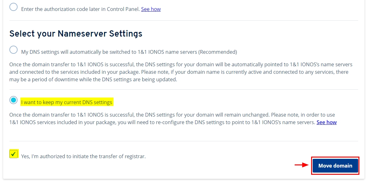 이전 동의에 체크도 하고 [Move domain] 클릭