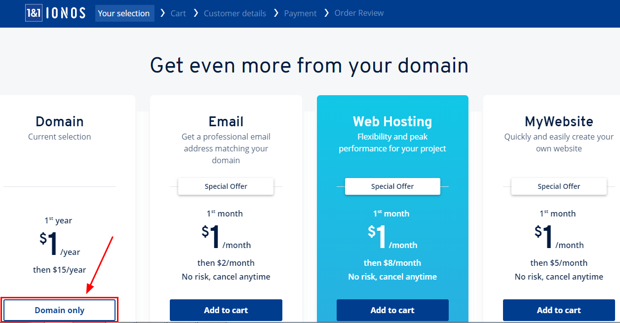 도메인 이전만 할 것이므로, 왼쪽 $1인 [Domain only]만 선택