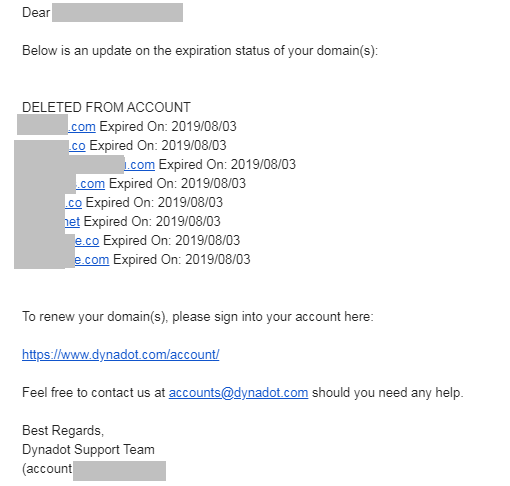 해외 도메인 업체 다이나닷닷컴(dynadot.com)의 도메인 만료 메일도 살펴보자.
